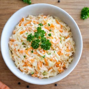 Coleslaw ist ein amerikanischer Krautsalat aus fein gehobeltem Weißkohl, Karotten und einem cremigen Dressing. Besonders beliebt ist er als Beilage zu BBQ-Gerichten, Burgern oder Grillfleisch.